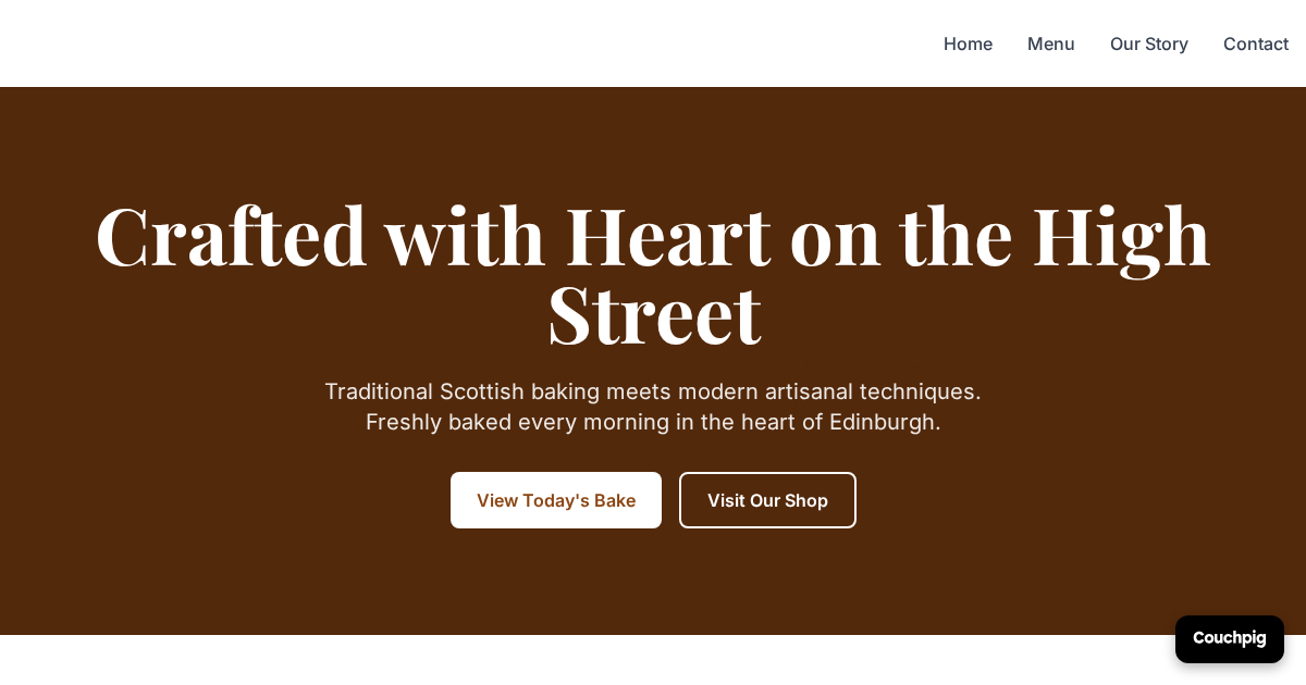 Building yourself takes weeks and requires design skills. Couchpig gives you a professional bakery website in minutes, designed specifically for your industry.