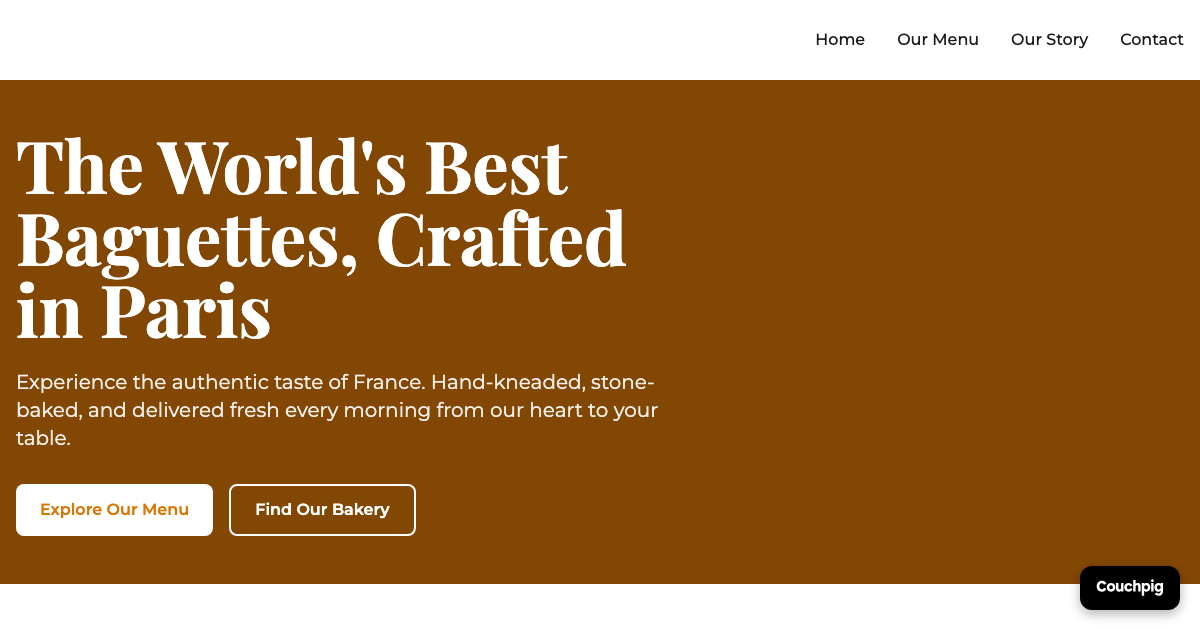 With Couchpig's AI, your bakery website is ready in minutes. Just describe your business or paste your existing URL for a redesign.