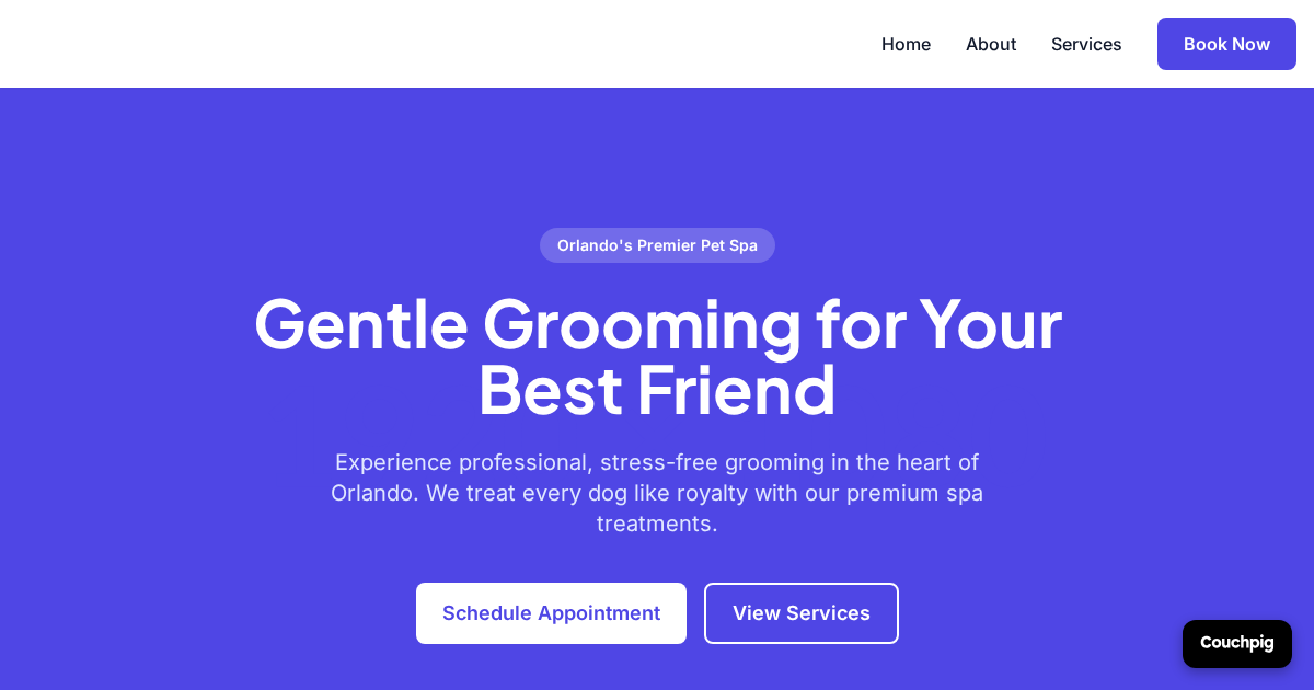 Your dog groomer business deserves a website that looks as good as your work. Couchpig uses AI to create modern, mobile-ready websites in minutes—no design skills needed. Just describe your business or paste your existing site for a complete redesign.