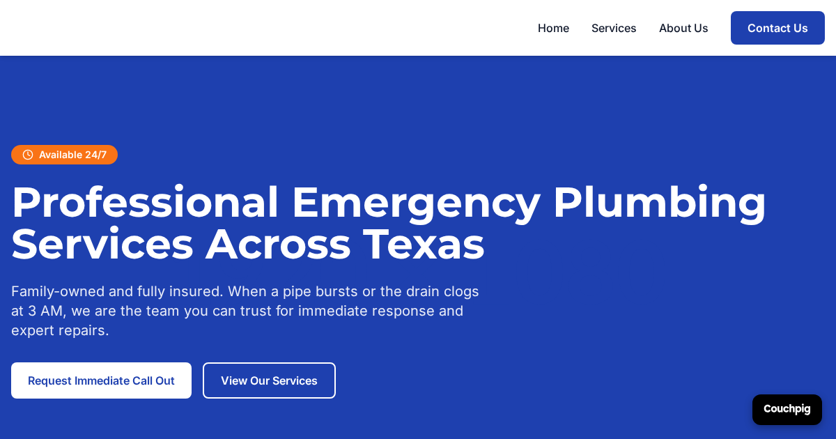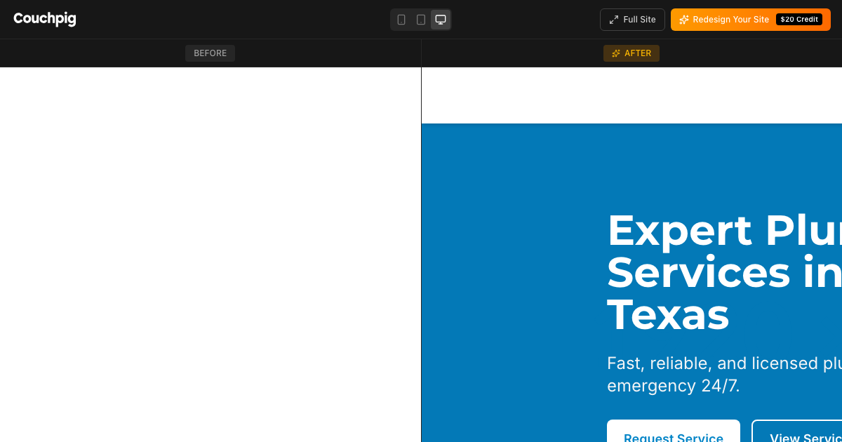 With Couchpig's AI, your plumber website is ready in minutes. Just describe your business or paste your existing URL for a redesign.